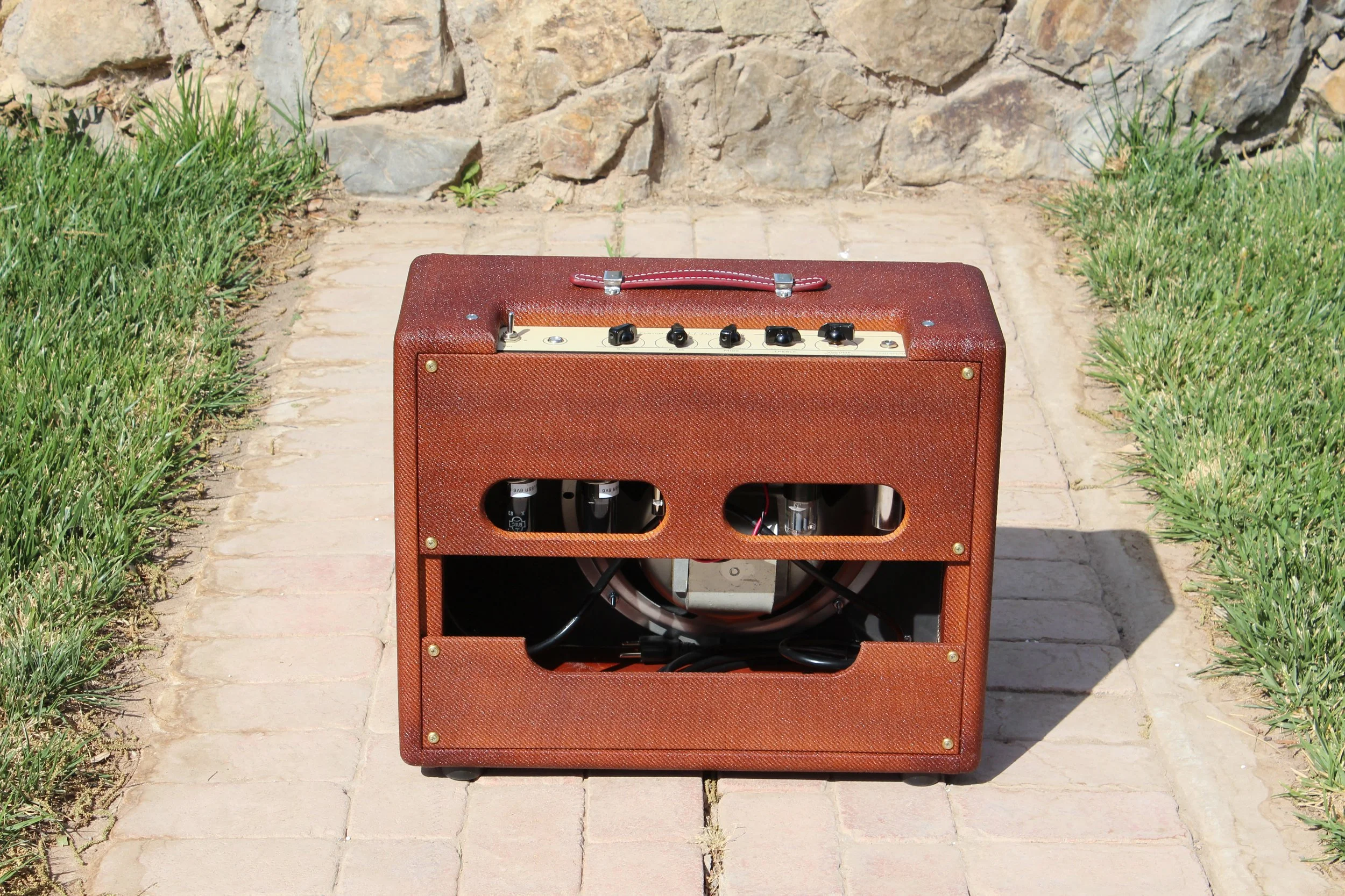 Custom Made Transformer Set, Finger Joined Pine Cabinet, Weber Ceramic Vintage series speaker, Long Life Electrolytic Caps, Vishay, Malory 150, and Panasonic tone caps, Switchcraft and Cliff Jacks, special resistor selection for low noise and great tone.
