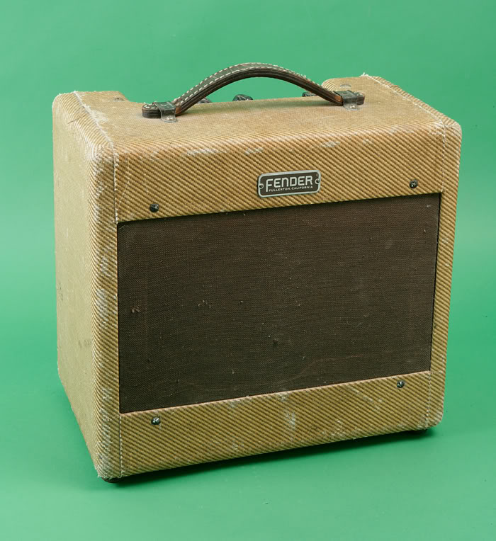 This is the classic Tweed Princeton model. Fender improved the power section with better filtering and dropped the choke giving the amp more punch, volume and definition. Again it has a 12AX7, 6V6 and 5Y3 as it's tube compliment. The 12AX7 is cathode biased and the sound is clear at lower volumes and get a nice crunch when turned up. This is model people are generally referring to when they talk about a Tweed Princeton.